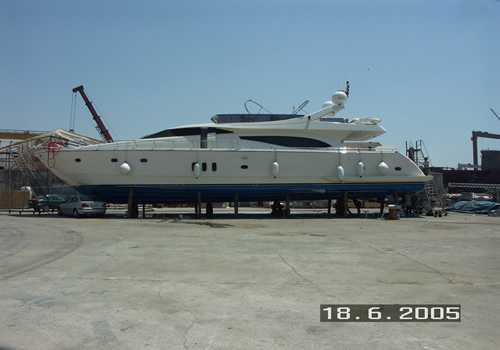 Корпус MC 82 сделан из 4 слоев африканских супер планок Mahogany ламинированных стекловолокном и гелькоутом 210gr/m2. Суперструктура, пол, палубы и перегородки сделаны морской древесины. Рамы, прогоны и стрингера сделаны из массивов Akajhou с 12% поглощением влажности . Открытые палубы покрыты тиком 15mm. На MC 82 есть 4 каюты для 8 пассажиров, 3 отдельные убрные, большой салон с обеденным столом для 6 персон, камбуз и 2 каюты экипажа для 3 человек. Яхта оборудована полностью электронной системой навигации включая радиолокатор, картплоттер, эхолот и глубиномер. Она также имеет контролирующий все системы компьютер. Корпус покрашен с помощью системы International. Яхта имеет крейсерскую скорость 26 узлов с двигателями CAT C30 1570BHP. Система развлечений яхты состоит из спутникового телевидения, DVD плеера в каждой каюте с TV LCD 20” и Plazma 42” с домашним кинотеатром в салоне. Отделка стен ванн - CORIAN, лакированная мебель, керамические раковины, смесители HANSGROHE, отдельные душевые кабины, электрические туалеты TECMA. Яхта аттестована R.I.N.A. на 100 А 1.1 «Y». Камбуз оборудован с холодильником GE, посудомойкой SIEMENS, электрической поверхностью и вытяжкой SIEMENS. Стены и пол камбуза сделаны из CORIAN с лакированной мебелью. Вся мебель и вспомогательное оборудование сделаны из вишни с использованием яхтенной гарнитуры International (шарниры, рельсы, кнопки, ручки)