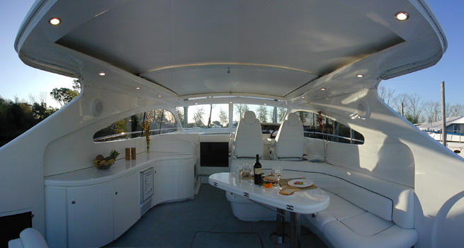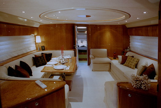Верхний свет, изобилие утопленных неярких ламп дает возможность изменять обстановку салона. Для дальнейшего поднятия настроения и развлечений на борту, Вы и Ваши гости могут оценить плазменный телевизор и стерео-систему с CD-DVD.
