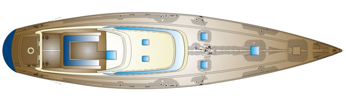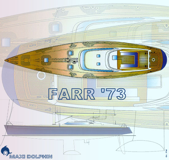 MD 73 по проекту Bruce Farr. Круизная яхта внутри гоночного корпуса. MD 73 может предложить различные варианты для внутренней планировки в одном и том же корпусе, таким образом яхта сохранит свои первоначально структурные характеристики. Один из по возможности внутренней планировки включает 5 больших двухместных кают, большую кают-компанию разделенную на две части, и отдельно камбуз. Очевидно, для того что бы вес интерьера не ухудшал прекрасные ходовые качества яхты, внутреннее наполнение сделано из морского ply сэндвича с сердечником Airex; очень роскошно и удобно и в то же самое время легко и прочно.