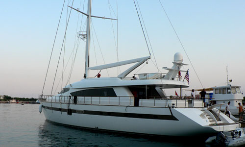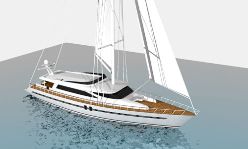 Этот притягивающий взгляд эксклюзивный дизайн моторно-парусной яхты насчитывает одну кают компанию , одну VIP спальню и 3 гостевых каюты. Ее корпус сделан из четырехслойного стекловолокна и композитной деревянной суперструктуры.