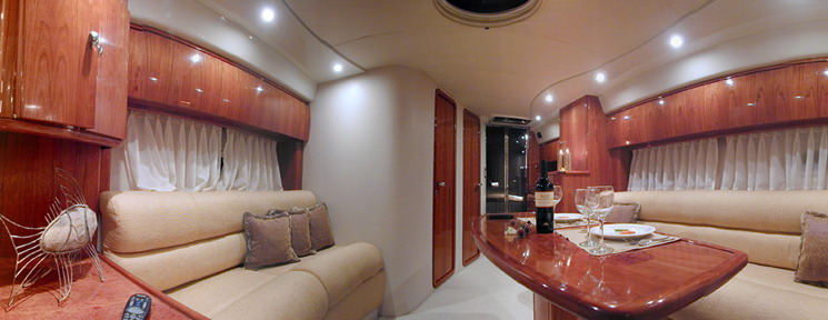 Верхний свет, изобилие утопленных неярких ламп дает возможность изменять обстановку салона. Для дальнейшего поднятия настроения и развлечений на борту, Вы и Ваши гости могут оценить плазменный телевизор и стерео-систему с CD-DVD.