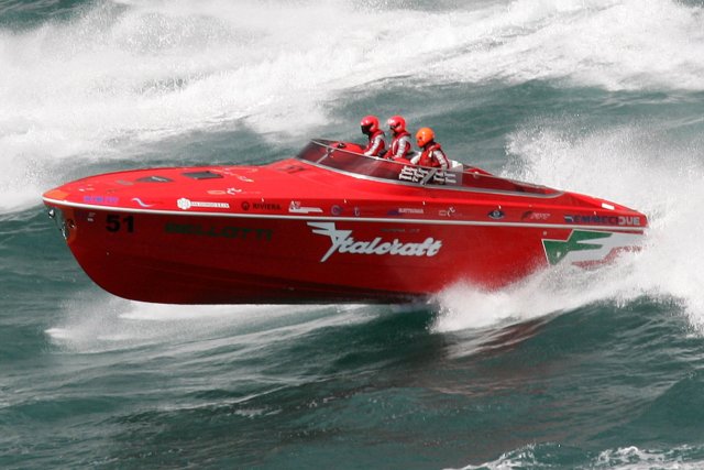 Все составляющие судна, начиная с малейших технических деталей, произведены исключительно итальянскими компаниями, и являются «строго» серийными: судно оборудовано моторами IVECO FPT, а поверхностные трансмиссии - Top-System. Электрооборудование поставили компании “San Giorgio Sein” и “Elettromar”. Также было решено использовать красный цвет для каркаса и крыши, поскольку он тесно связан со скоростью, а так же, в определённом смысле, с сылкой на «Итальянский стиль». По сравнению с прогулочной версией, данный экземпляр притерпел небольшие абсолютно незначительные изменения, которые, главным образом, касаются структурного и гидродинамического аспекта. Материалы, использованные для каркаса- кевлар и винилестеровая смола- позволили реализовать облегчённые и усиленные структуры, в соответствии с сертификацией ЕС и навигационными нормами R.I.Na.